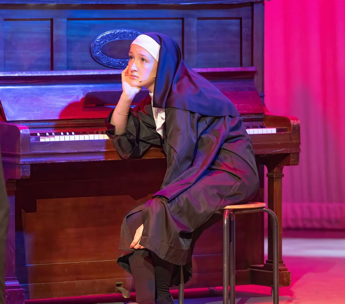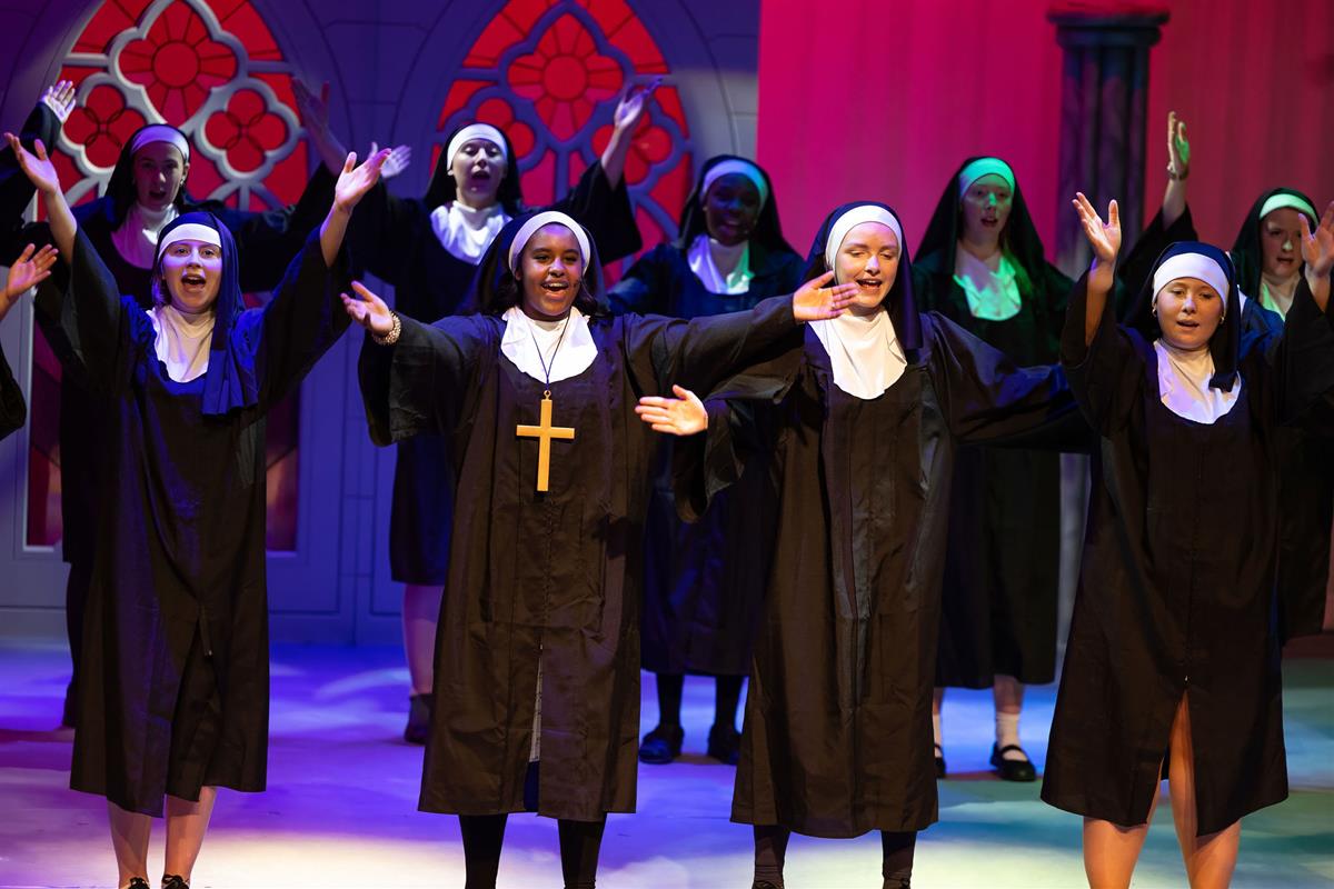 The little school with the big heart was on stage again - for the second time in 2025 - thanks to the hard work and dedication of staff and students. Under the baton (literally) of Producer, In. Ní Bhroin, our music teacher, Choreographer Robyn O'Brien and Director, In. Nic Cumhaill, our TY and 5th year students brought a stunning performance of "Sister Act" to the stage of TÚS' Millennium Theatre from 3rd - 5th December. And what a stage! The set, created by In. Ní Chathasaigh, our art teacher, assisted by Radek Urniaz, our incredibly talented caretaker, and TY art students was breathtakingly beautiful and transported us into the world of Deloris Van Cartier, Philadelphia 1977 and Queen of Angels' Convent. As with so much of what happens in Laurel Hill Coláiste FCJ, team-spirit was in evidence not just on stage but backstage too - with In. Ní Dhomhnaigh directing our backstage crew of In. Ní Ghealagáin and a team of willing senior students, In. Nic Conmara assisting with lighting and sound - not to mention lending an expert hand with make-up and hair - and many more staff and student helpers, who loaded props in and out of the theatre and stepped in to supervise and organise, as required! And then there were our musician students - past and present - who played with the show orchestra, adding immeasurably to the star quality of the show! Absolutely no doubt about it, in the words of Deloris Van Cartier, everyone who helped and supported in delivering this stellar performance is part of Laurel Hill Coláiste's "terrific sister act". Oh, and a massive "Thank you" to Whoopi Goldberg - REALLY! - for her kind words of encouragement and gorgeously personal message to the girls and to In. Ní Bhroin. Ba mhór linn é!